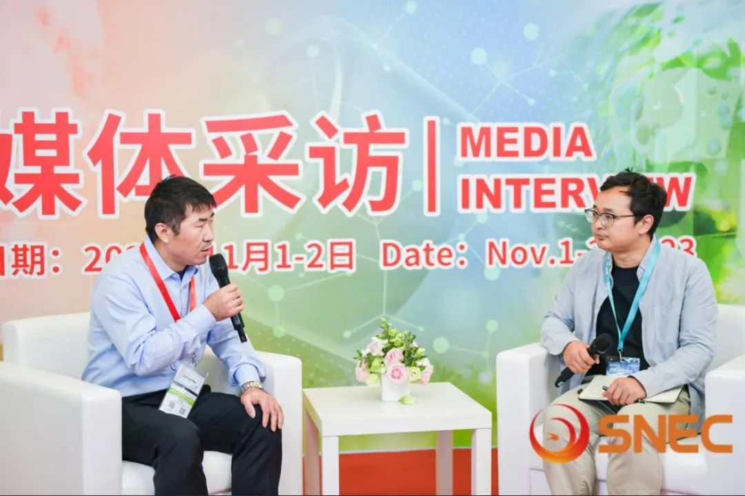 ▲东升国际官网技术总监赵展展先生接受SNEC媒体采访